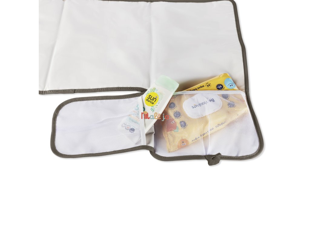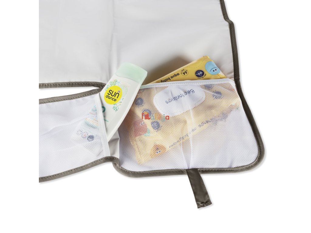 Kompaktná prebaľovacia podložka s tromi vreckami, ktorá uľahčí prebaľovanie na cestách. Ľahko sa čistí, nezaberá miesto a všetko potrebné máte vždy po ruke.