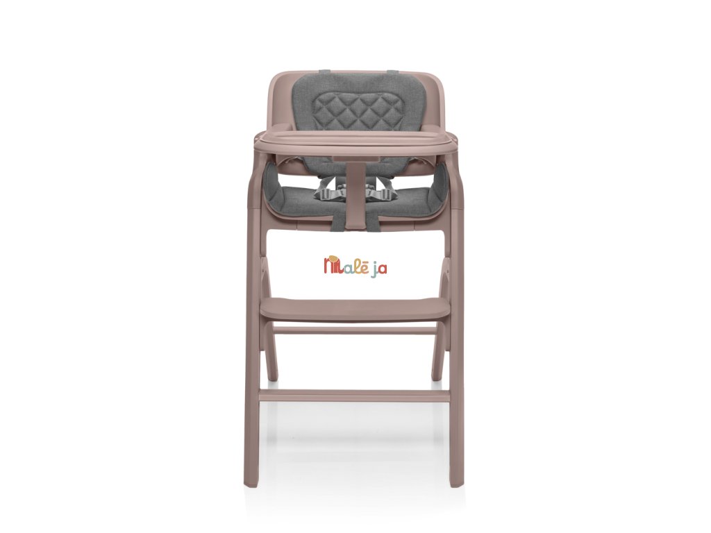 Päťbodový bezpečnostný pás a stabilná konštrukcia zaručia maximálnu ochranu pri každom kŕmení. Hrazda medzi nožičkami zabráni skĺznutiu a zároveň drží odnímateľný pultík s praktickým táckom.