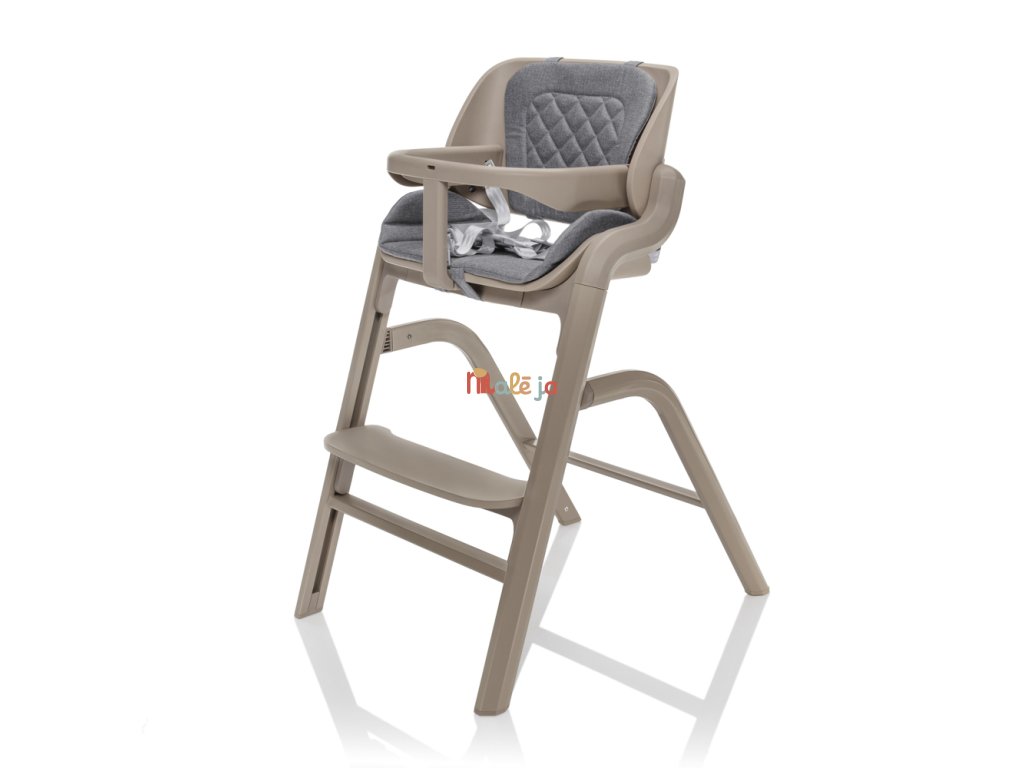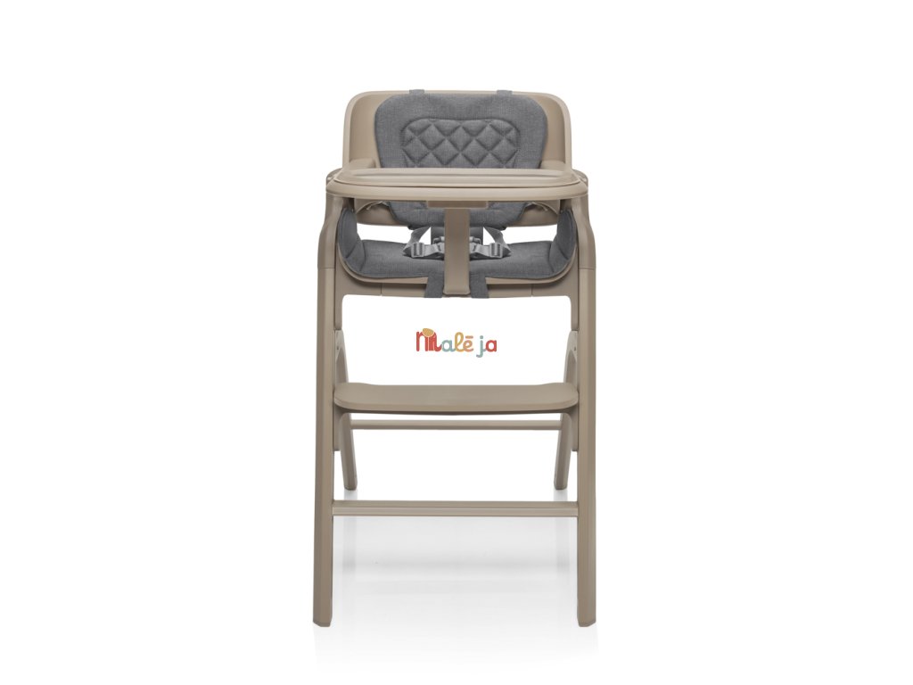 Päťbodový bezpečnostný pás a stabilná konštrukcia zaručia maximálnu ochranu pri každom kŕmení. Hrazda medzi nožičkami zabráni skĺznutiu a zároveň drží odnímateľný pultík s praktickým táckom.