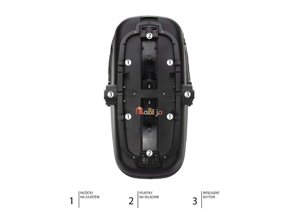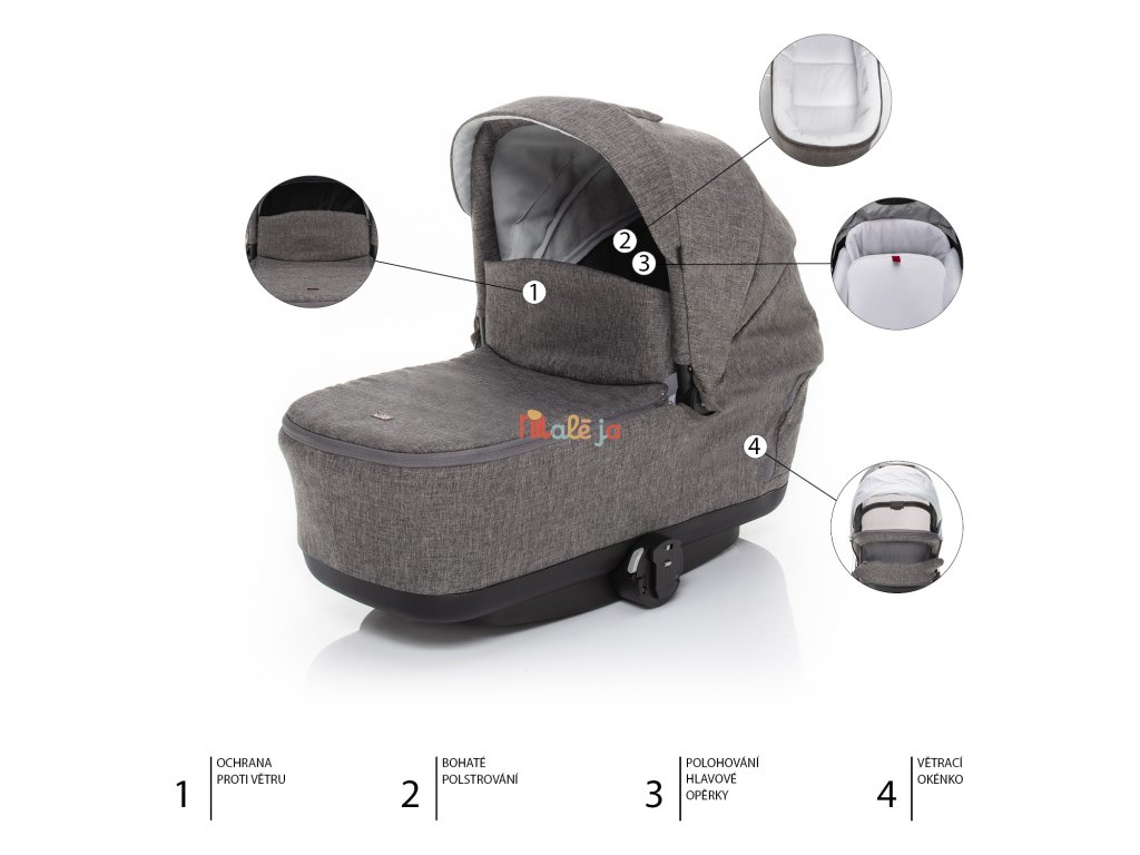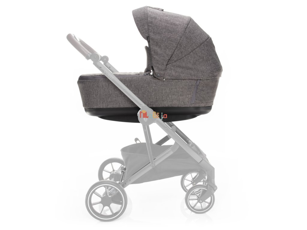Po vybratí z podvozku môžete hlbokú kolísku použiť ako kolísku, napríklad na návšteve. Alebo môžete použiť zámok na spodnej strane, aby ste kolísku pevne udržali na mieste. Slnečná clona je dôležitou súčasťou striešky. Prenosná postieľka je tiež vybavená rukoväťou na prenášanie, ktorá je elegantne skrytá v strieške kočíka. Rukoväť tak nenarušuje vzhľad kočíka.
