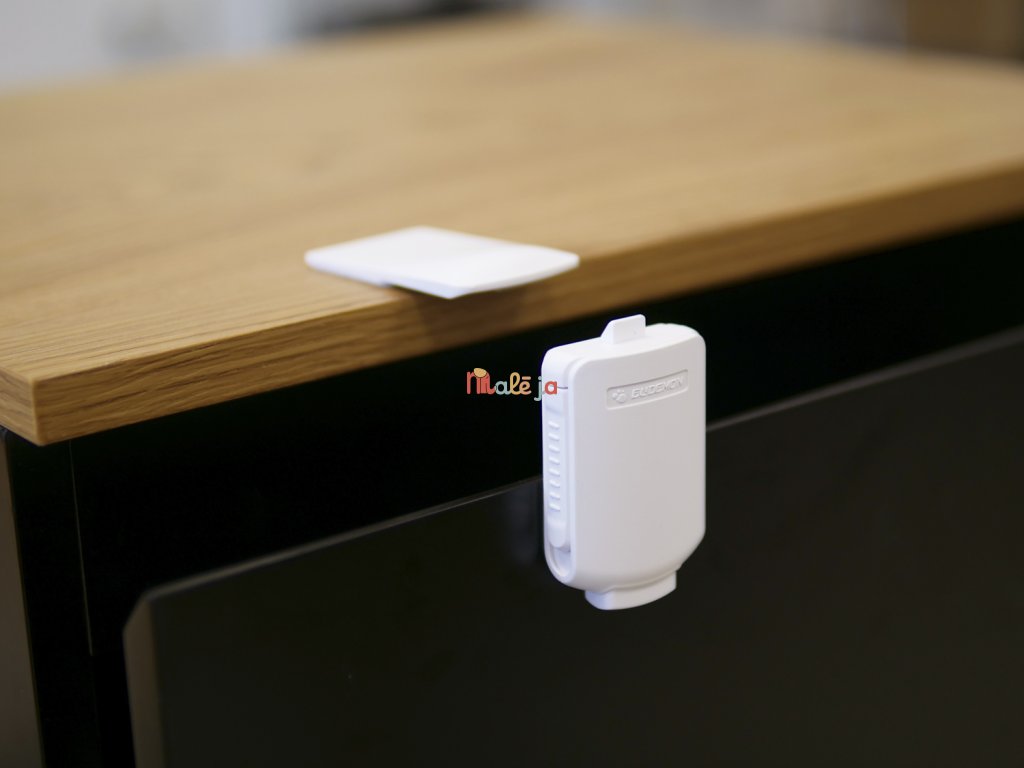 Praktický zámok umožňuje uzamknúť zásuvku a zabrániť tak deťom dostať sa k jej obsahu. Je možné použiť na všetky typy skriniek a zásuviek. Jednoduchá inštalácia pomocou lepiacej pásky.