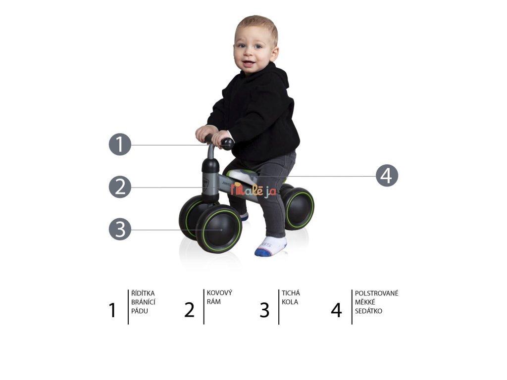 Odrážadlo je vhodné pre deti od 18 mesiacov do 20 kg a podporuje rozvoj rovnováhy a pohybových zručností.