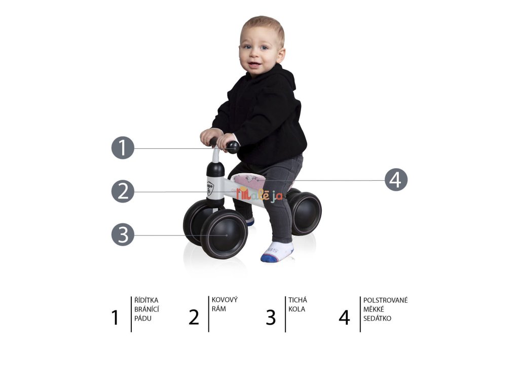 Odrážadlo je vhodné pre deti od 18 mesiacov do 20 kg a podporuje rozvoj rovnováhy a pohybových zručností.