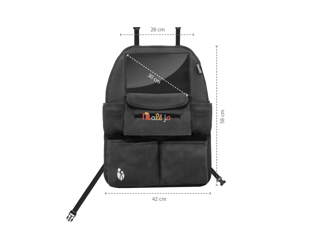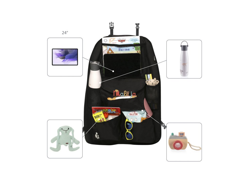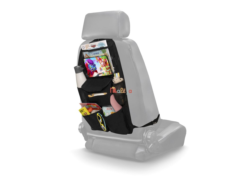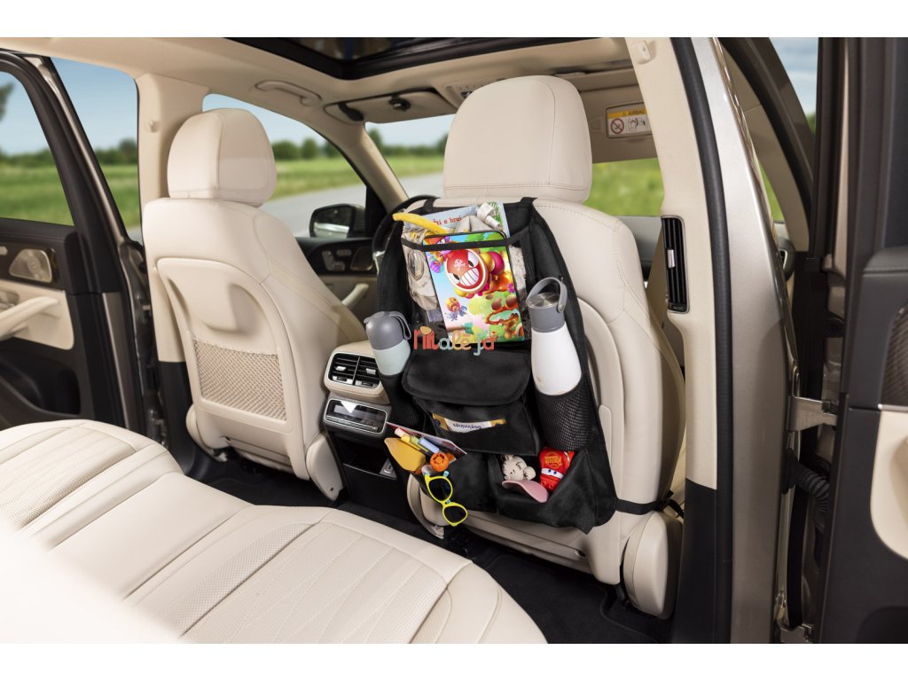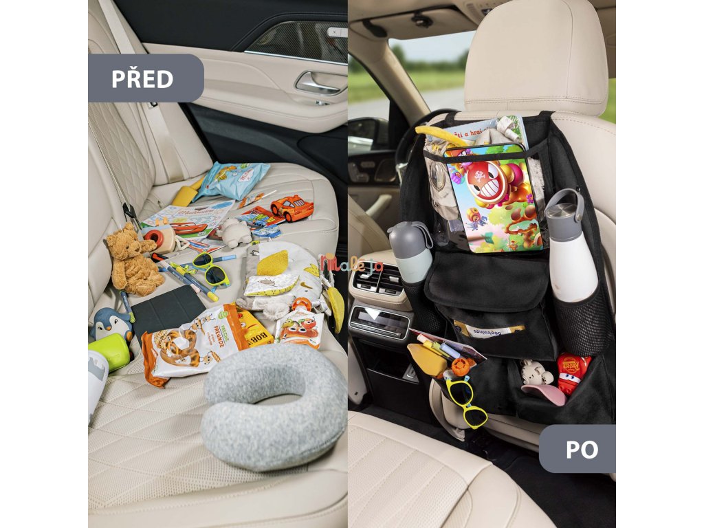 Chytrý a efektívny organizér na sedadlo auta spríjemnia cestu nielen vám, ale vďaka vrecku na tablet tiež vašim deťom, ktoré sa môžu zabaviť sledovaním rozprávok. Organizér udrží na svojom mieste tiež dve fľaše na nápoje, takže sa netreba obávať vyliatiu. Vrecko na vreckovky a dve hlboké vrecká na ďalšie predmety, ako sú napríklad hračky, robia z organizéra príjemnú cestovnej pomôcku, ktorá pomôže udržať poriadok vo vozidle aj pri cestovaní s vašimi najmenšími. Organizér sa vďaka prackám ľahko pripevní na zadnú stranu sedadla a ľahko ho tiež odoberiete.
