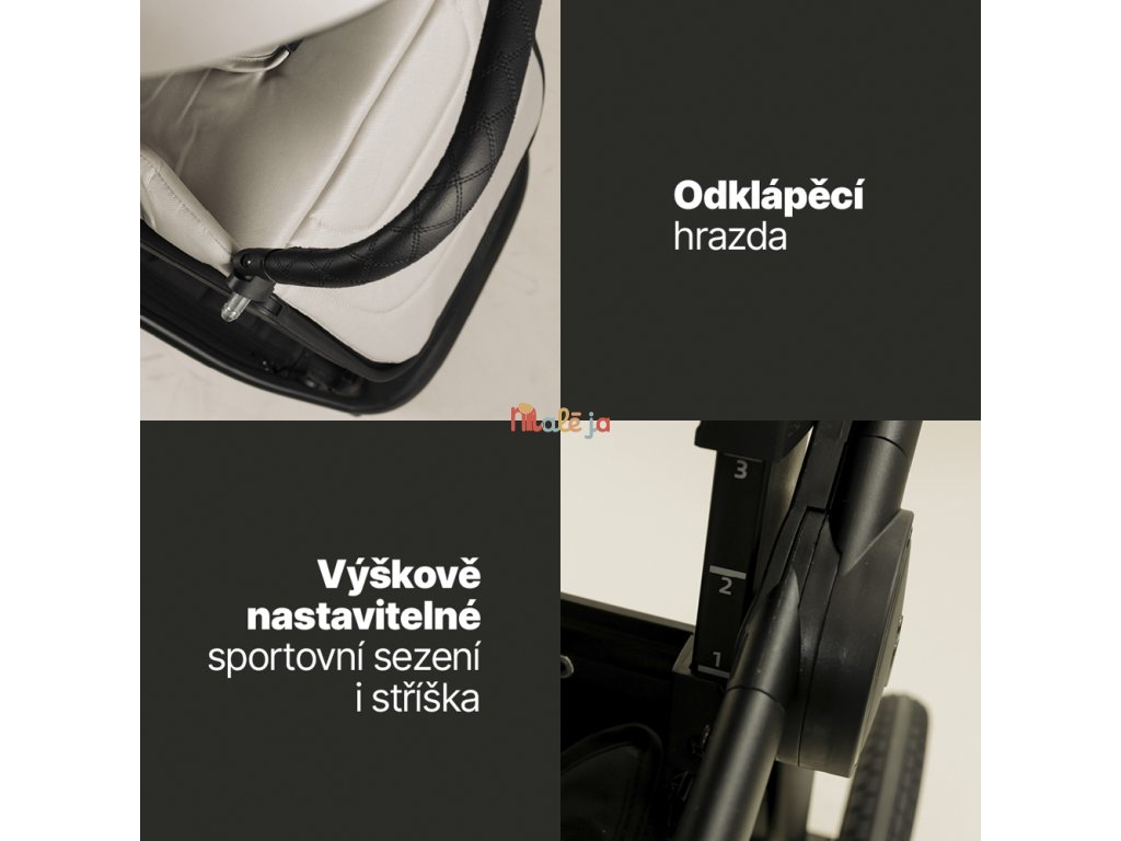 • Výškovo nastaviteľné sedenie aj strieška (3 úrovne)