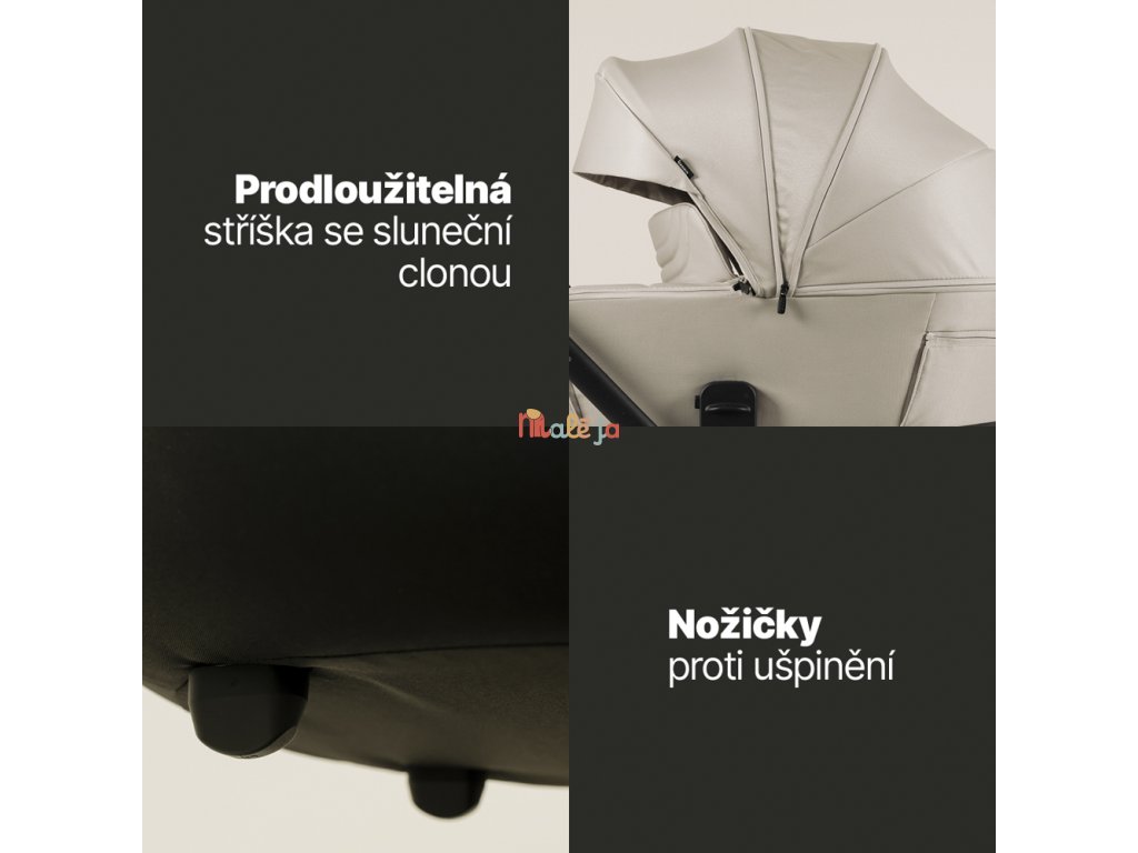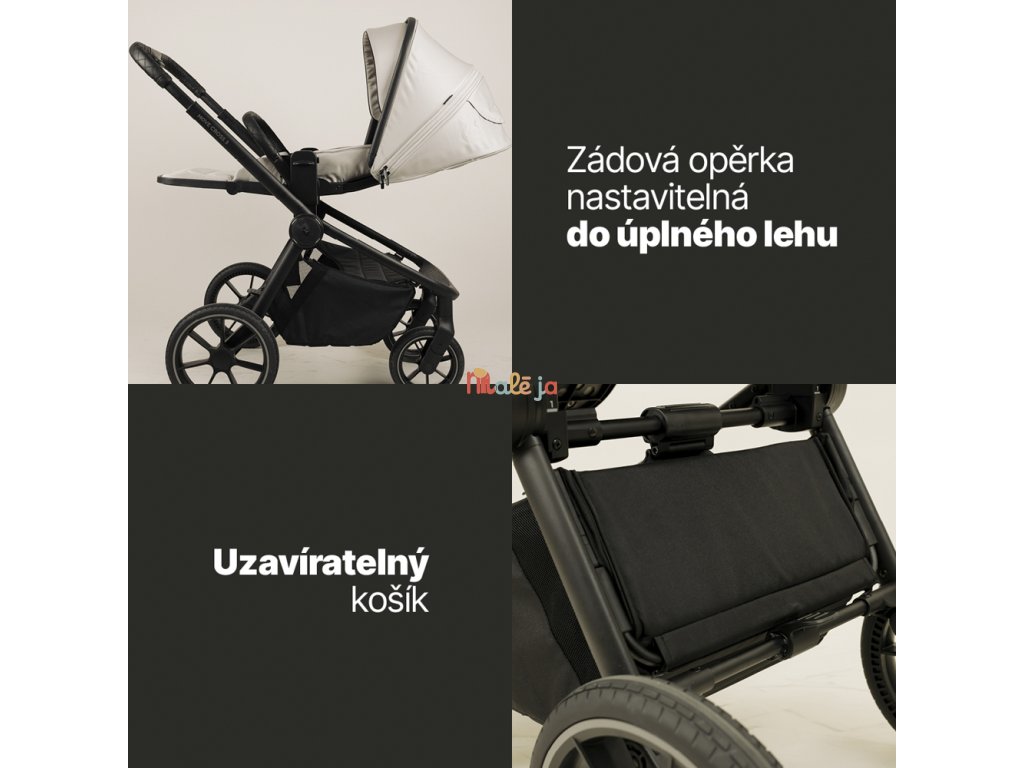 • Výškovo nastaviteľné sedenie aj strieška (3 úrovne)