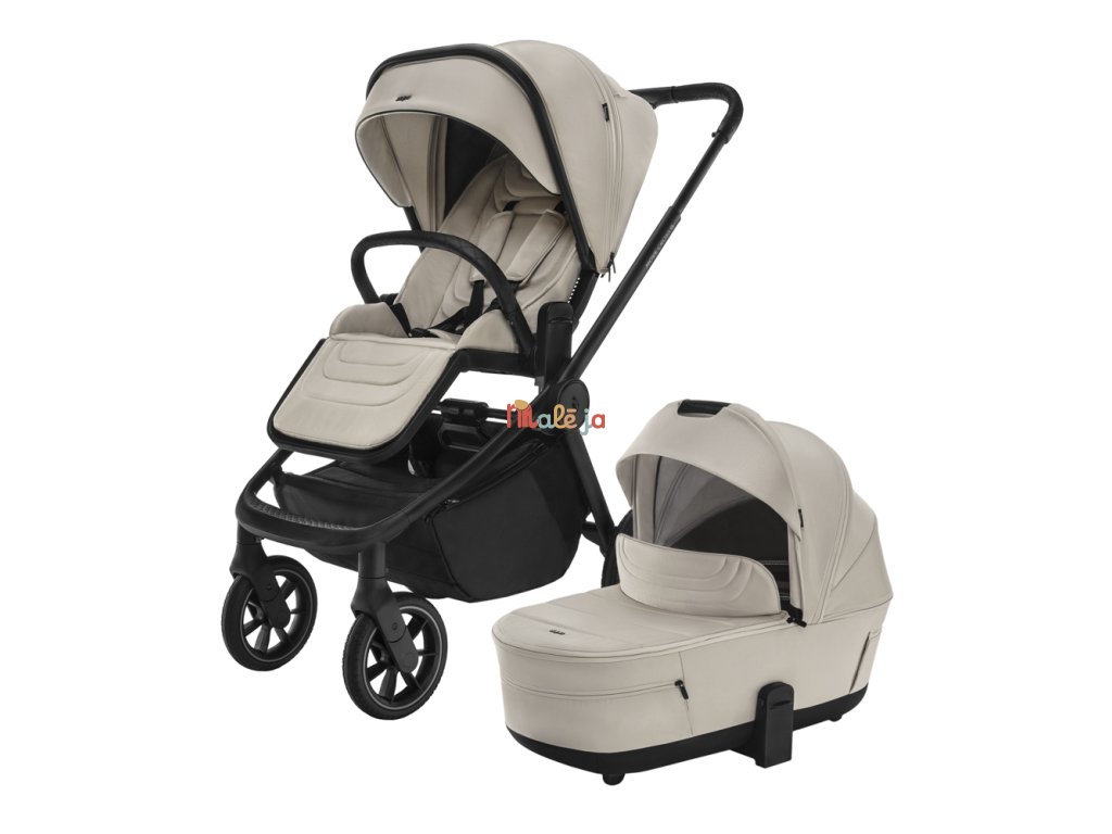 Medzi praktické detaily patrí magnetická pracka pásu, uzatvárateľný košík, odklápacia hrazda a madlo na prenášanie zloženého kočíka. Kočík sa jednoducho skladá a prenáša aj jednou rukou. V balení nechýba pláštenka, nánožník a štýlová prebaľovacia taška.
