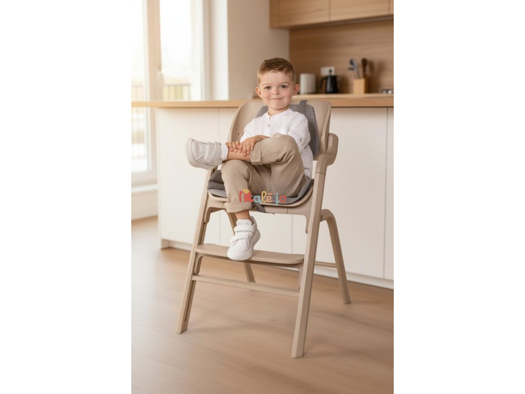 Akonáhle dieťa začne samostatne sedieť, jednoducho odstránite novorodenecký set a získate klasickú vysokú stoličku s praktickým odnímateľným pultíkom. Výškovo nastaviteľné sedadlo aj opierka nôh umožňujú ergonomické sedenie počas celého rastu.
