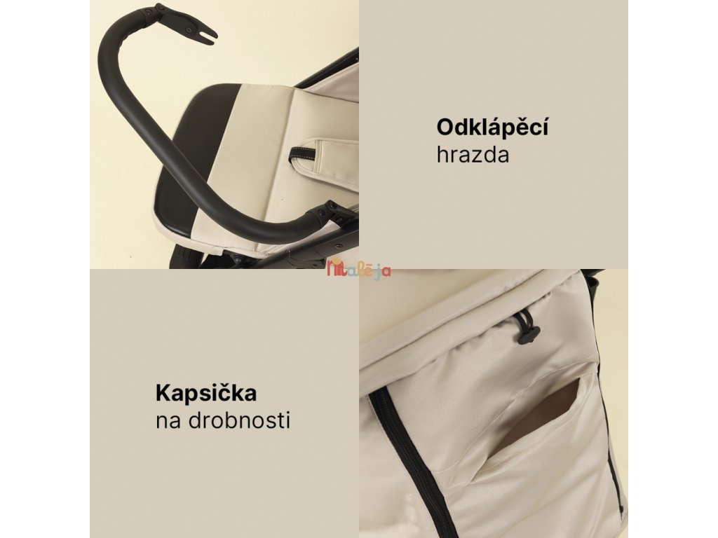 Zopa Moya myslí aj na detaily – vrecko na drobnosti, odklápacia hrazda pre jednoduchý prístup k dieťaťu, ventilácia v zadnej časti kočíka pre lepšie prúdenie vzduchu. Po zložení nezaberie takmer žiadne miesto a zmestí sa aj do menšieho kufra auta.