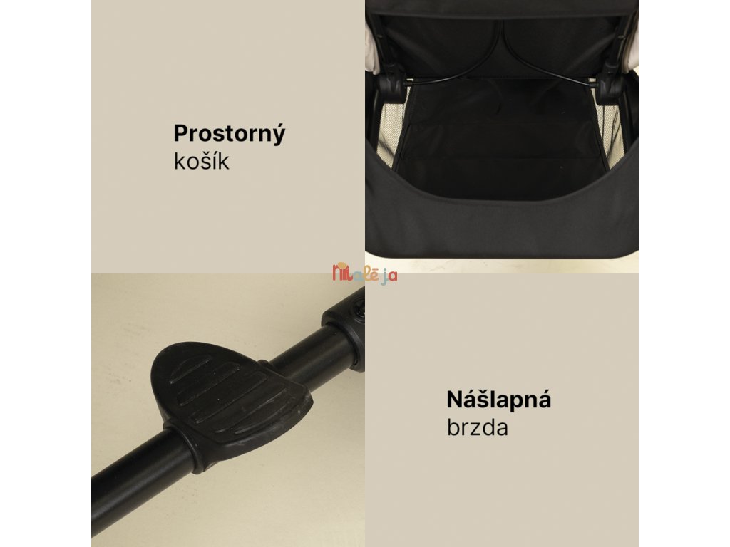 • Rozmery rozloženého kočíka: 108 × 76 × 85 cm