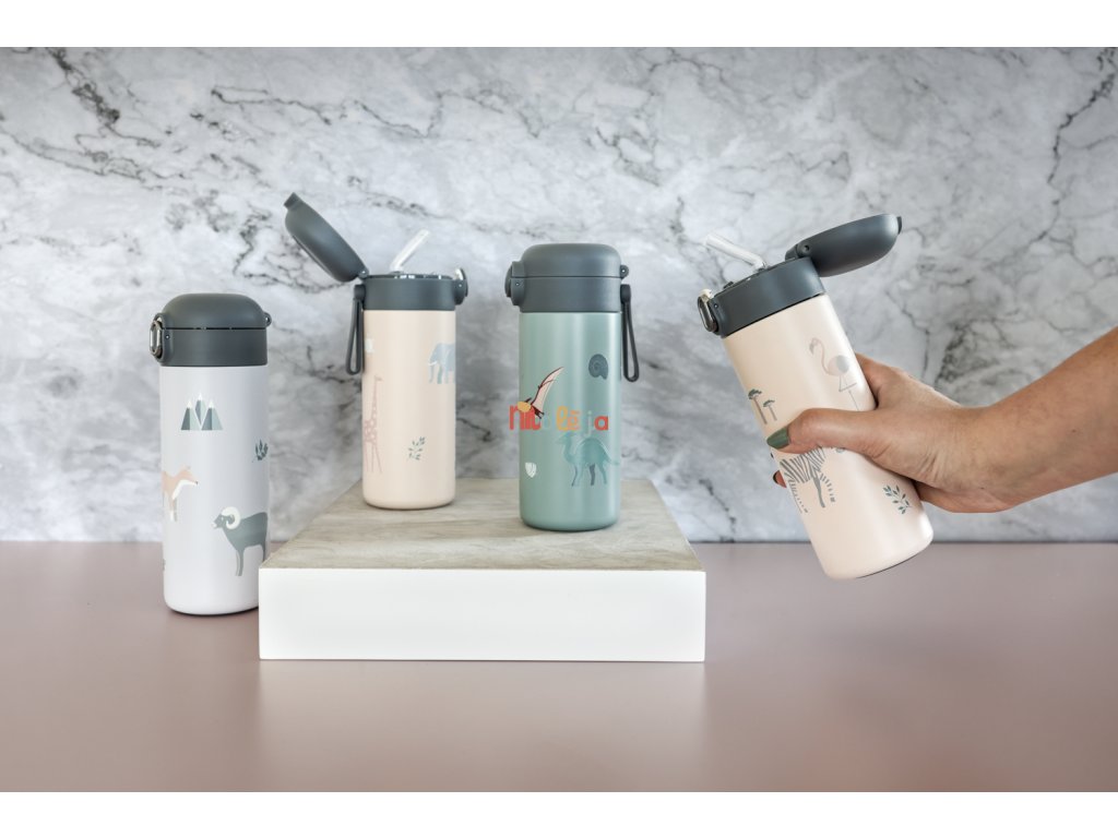 Osviežujúca šťava alebo teplý čaj? Dizajnová termoska 400 ml s veselými motívmi a vzduchotesným uzáverom udrží nápoje horúce 12 h, chladné 24 h. Ideálne na dobrodružstvo.